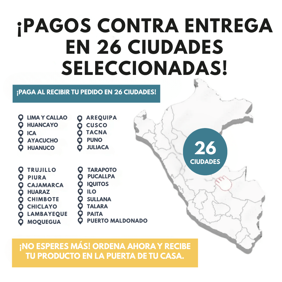 Paga al recibir tu pedido en 26 ciudades del Perú ✅