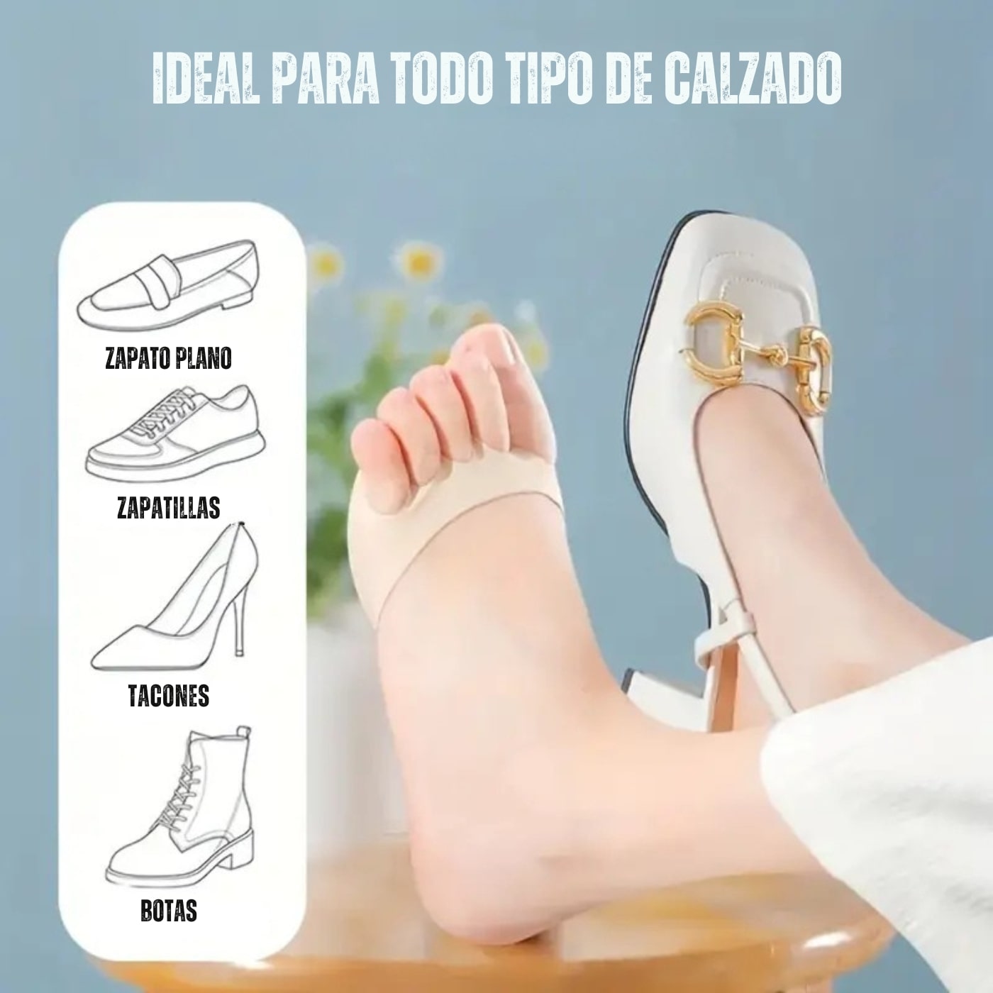 3️⃣ Ponte tus zapatos favoritos, tacones, casuales o deportivos y siente el alivio inmediato.